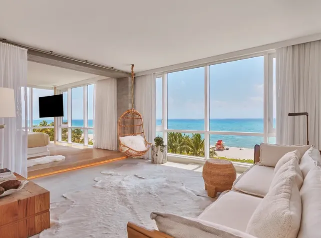 1 Hotel South Beach is a sustainable luxury hotel located at 2341 Collins Avenue, Miami Beach, FL 33139. Nestled along a pristine 600-foot stretch of oceanfront property, it offers guests a tranquil retreat with direct access to the beach. The hotel is designed with eco-conscious materials, including reclaimed wood and locally sourced elements, creating a harmonious blend of nature and modern comfort.