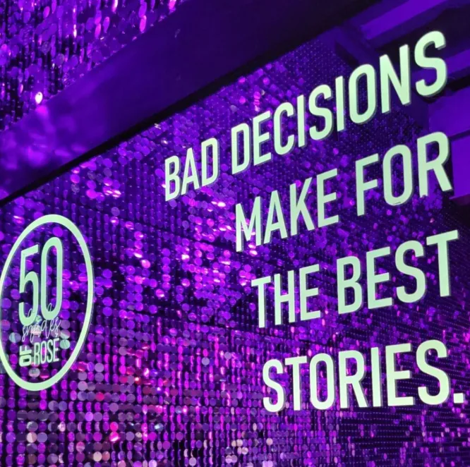 Known for its ever-changing themes, 50 Shades of Rosé transforms its space to create immersive experiences that captivate guests. From '90s nostalgia nights to seasonal events like 'Hollywood Horror Nights,' the venue's décor, music, and ambiance align with each theme, providing a unique setting for every visit.