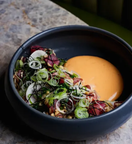 Animae is a premier Wagyu steakhouse in San Diego's Marina District, renowned for its fusion of West Coast and Asian culinary influences. Helmed by celebrity chef Brian Malarkey and Executive Chef Tara Monsod, Animae offers an innovative menu featuring Japan’s finest A5 wagyu beef, triple-seared over a Robata grill. The dining experience is elevated by a modern, Art Deco-inspired design, creating an ambiance that is both elegant and theatrical. The restaurant's cocktail program is equally sophisticated, focusing on small-batch sakes and inventive beverages that complement the menu's bold flavors.