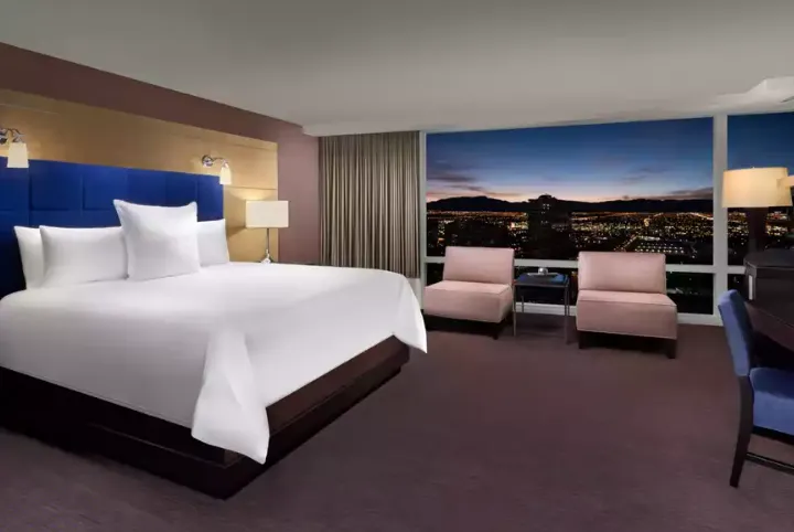 ARIA Resort & Casino is a premier luxury destination located on the Las Vegas Strip in Paradise, Nevada. As the centerpiece of the CityCenter complex, ARIA stands out with its modern architecture, featuring two curvilinear glass towers that rise up to 50 stories. The resort boasts 4,004 rooms and suites, offering a blend of sophistication and cutting-edge technology. Each room is equipped with a 10-inch touchscreen to control lighting, temperature, and request services, exemplifying ARIA's commitment to innovation and sustainability.