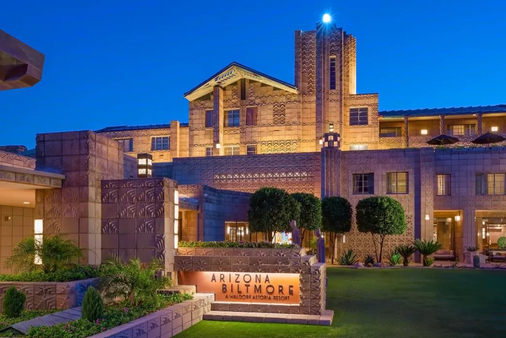 he Arizona Biltmore, a historic resort in Phoenix, Arizona, opened its doors in 1929 and is renowned for its architectural design influenced by Frank Lloyd Wright. Designed by Albert Chase McArthur, the resort features distinctive "Biltmore Blocks" and has been a symbol of luxury and elegance for nearly a century.
