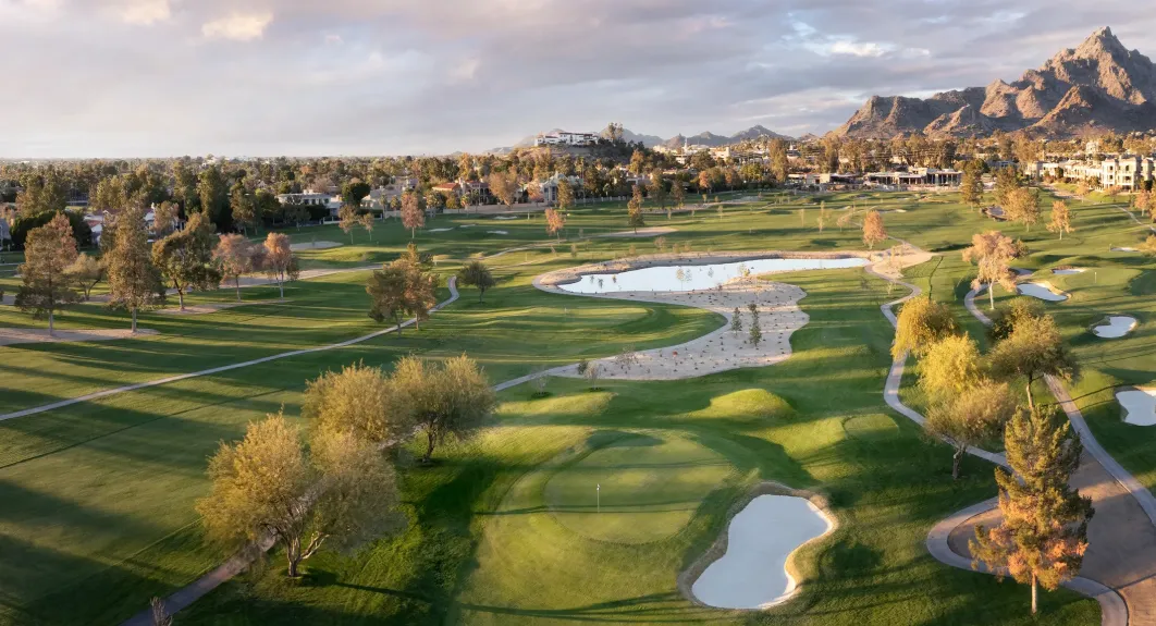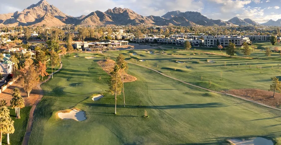 The Arizona Biltmore Golf Club is a historic and prestigious golfing destination in the heart of Phoenix, Arizona, offering two distinct 18-hole courses set against the stunning backdrop of the Phoenix Mountain Preserve. The newly redesigned Estates Course, crafted by Tom Lehman, delivers a modern parkland experience with contoured fairways, strategic bunkering, and dramatic skyline views, while the Links Course, designed by Bill Johnston, features rolling fairways, arroyos, and lush landscaping for a classic desert-links feel. Both courses are complemented by a striking Frank Lloyd Wright-inspired clubhouse that includes fine dining, event spaces, and luxury amenities. Renowned for its blend of architectural elegance, challenging play, and scenic beauty, Arizona Biltmore Golf Club stands as both a premier golf destination and a vibrant venue for events and leisure.