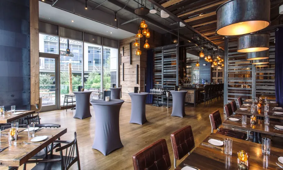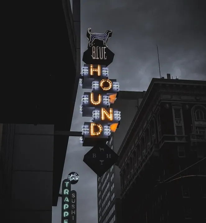 The interior of Blue Hound is sleek and urban, reflecting the vibrant energy of downtown Phoenix. The space includes a dining room, lounge, and an outdoor patio, providing versatile settings for various occasions. The restaurant's design emphasizes comfort and style, making it a popular spot for both casual dining and special events.