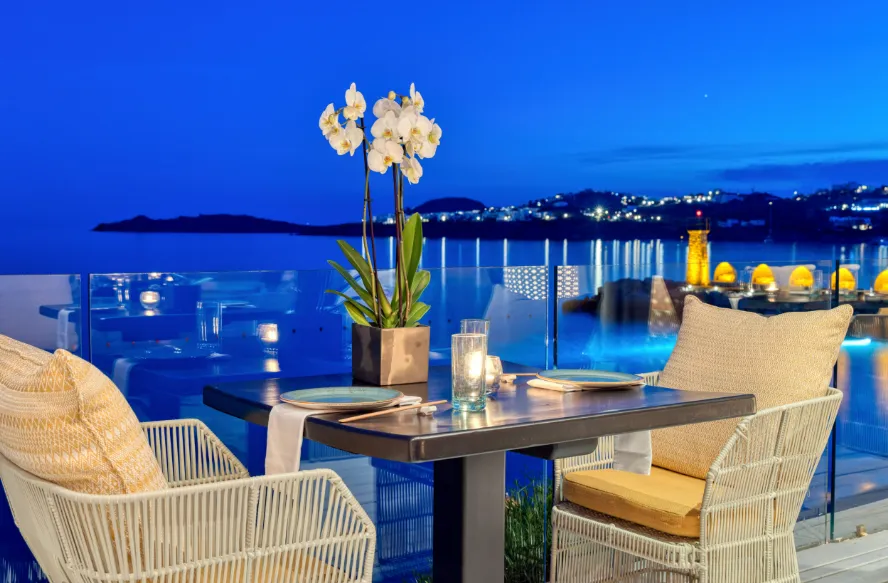 As the day progresses, Buddha-Bar Beach Mykonos transforms into a lively hotspot. Renowned DJs spin a blend of ambient deep house, downtempo, and world music nightly until 1:00 a.m., creating an energetic yet sophisticated vibe. The venue is especially popular during sunset, offering a perfect setting to enjoy music, cocktails, and the breathtaking views.