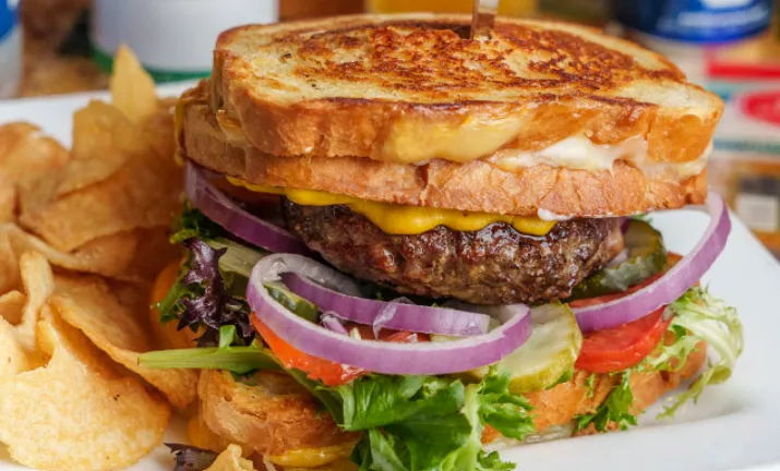 The menu features a variety of gourmet burgers, each crafted with fresh, high-quality ingredients. Signature items include the "1000 Island Burger," the "Bacon PB&J Cheeseburger Sliders," and the "Buffalo Chicken Sliders." For those seeking lighter fare, options like salads, sandwiches, and shareable appetizers such as Buffalo Chicken Eggrolls and Hummus & Pita are available. The kitchen caters to diverse tastes, ensuring a satisfying experience for every guest