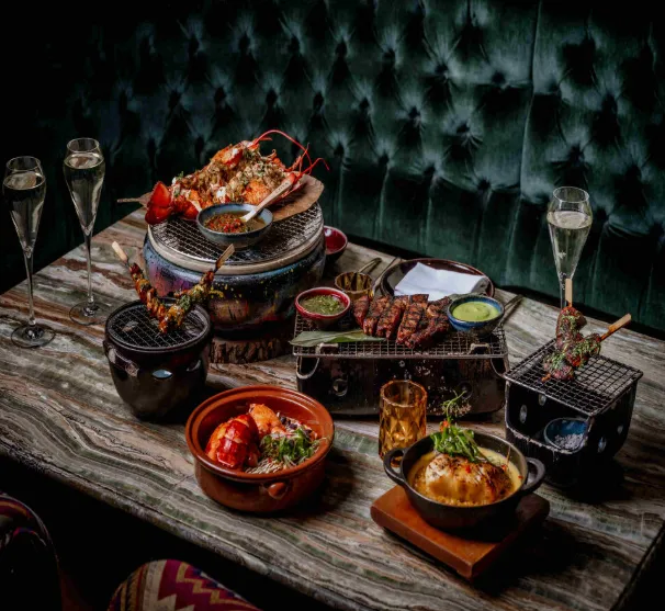 COYA Mayfair offers a captivating atmosphere that immerses guests in the vibrant spirit of Peru. Housed in a historic Georgian building, the interior design blends traditional Peruvian elements with contemporary luxury. The space features jewel-toned furnishings, intricate Incan-inspired murals, and lush greenery, creating a dynamic and inviting environment. Bespoke lighting fixtures, such as tarnished brass wave pendants and Aurelia chandeliers, add a touch of opulence, while leather panels and hand-painted murals evoke the rich cultural heritage of Peru. The Pisco Bar, inspired by Lima's oldest bars, offers a warm, intimate setting with a curated selection of pisco infusions and agave spirits. Live music and DJs infuse the venue with energy, enhancing the overall sensory experience. This fusion of design, culture, and ambiance makes COYA Mayfair a distinctive destination for those seeking an unforgettable dining experience.