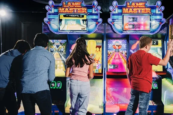 Dave & Buster's features a modern, high-energy environment with vibrant lighting, large-screen TVs for sports viewing, and a wide selection of arcade games ranging from classic favorites to the latest interactive experiences. The venues are designed to accommodate both casual diners and groups seeking a lively entertainment setting.