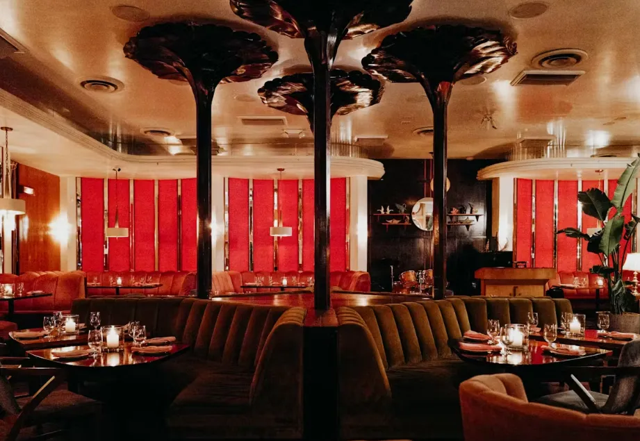 Delilah LA captures the elegance of a bygone era, blending the allure of a 1920s supper club with modern West Hollywood sophistication. The atmosphere is glamorous yet intimate, with plush velvet seating, Art Deco accents, gilded chandeliers, and soft, ambient lighting that set a warm, romantic tone. Rich details like fireplaces, patterned floors, and vintage-inspired décor create a sense of old Hollywood charm, while the spacious layout balances cozy nooks for private dining with open areas for socializing and nightlife. The result is a refined, stylish setting where dinner seamlessly transitions into a lively late-night scene.