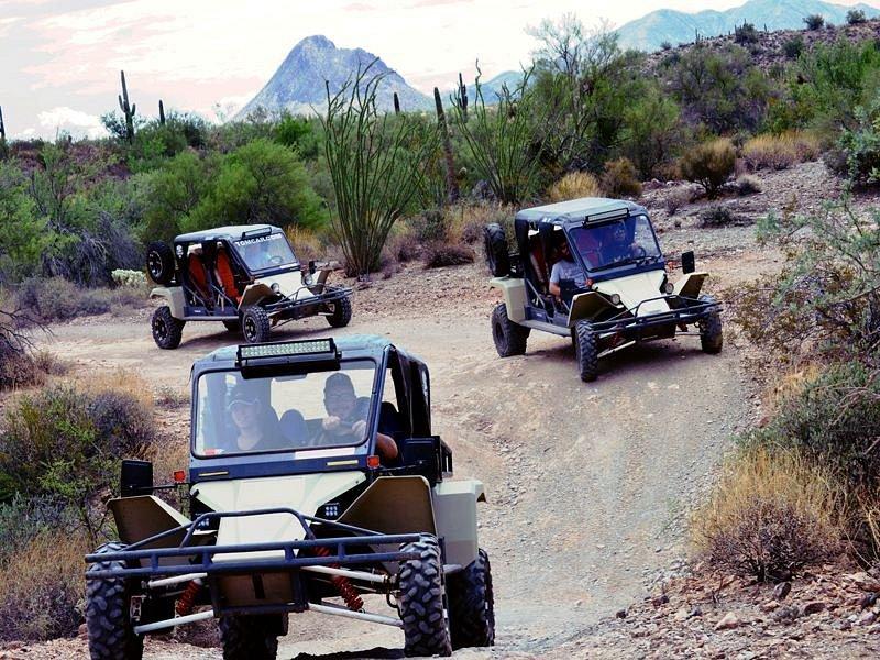 Desert Wolf Tours offers exhilarating off-road adventures in Arizona, featuring self-driven military-grade TomCar UTVs. These vehicles are renowned for their smooth handling and durability, providing an exceptional off-road experience. Guests can embark on various tours, including half-day excursions through the rugged Sonoran Desert and unique combinations of ATV rides with machine gun shooting sessions. The tours are guided by experienced professionals who ensure safety and enhance the adventure with insightful commentary. Notably, Desert Wolf Tours has been recognized as Arizona’s #1 ATV tour operator since 2009 and has earned multiple accolades, including the TripAdvisor Hall of Fame induction for six consecutive years.