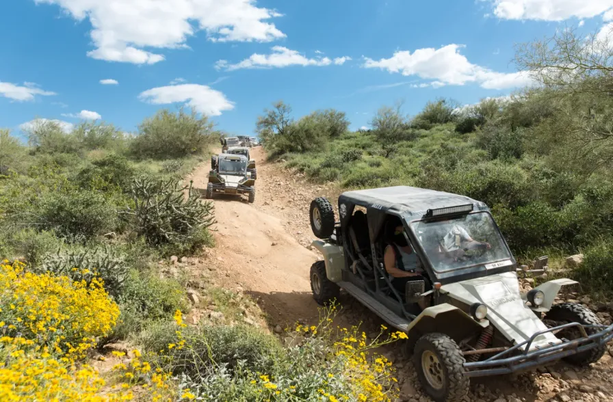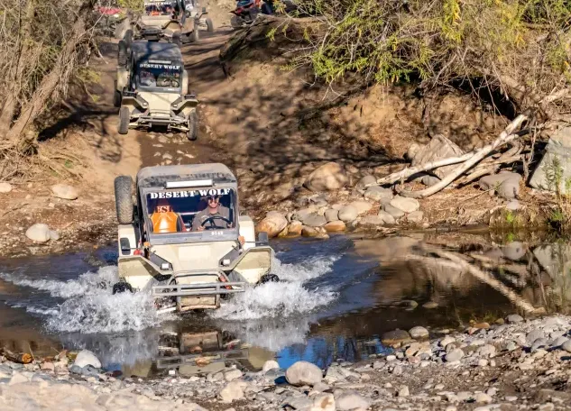 Desert Wolf Tours offers an immersive off-road adventure that seamlessly blends rugged terrain with the natural beauty of Arizona's Sonoran Desert. Guests embark on guided excursions in military-grade Tomcar UTVs, known for their durability and smooth handling, ensuring a comfortable ride through diverse landscapes. The tours traverse scenic mountain vistas, river crossings, and the expansive desert, providing opportunities to encounter local wildlife and unique plant life. Experienced guides enhance the experience by sharing insights into the desert's ecology and history, creating an engaging and educational atmosphere. For those seeking an added thrill, Desert Wolf Tours also offers the unique ATV Tour & Machine Gun Adventure, combining off-road excitement with the opportunity to shoot real machine guns in a controlled outdoor range. This fusion of adventure and education makes Desert Wolf Tours a distinctive choice for exploring the Arizona desert.