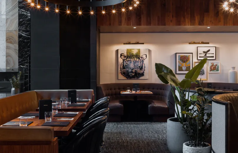 Earls Kitchen + Bar in Bellevue offers a sophisticated yet inviting atmosphere that seamlessly blends modern design with upscale-casual comfort. The restaurant spans over 10,000 square feet within the Lincoln Square complex, featuring soaring 28-foot ceilings that create an open and airy environment. The interior boasts a harmonious mix of marble and onyx fireplaces, custom-designed chandeliers, and a climatized wine room, all contributing to an elegant ambiance.