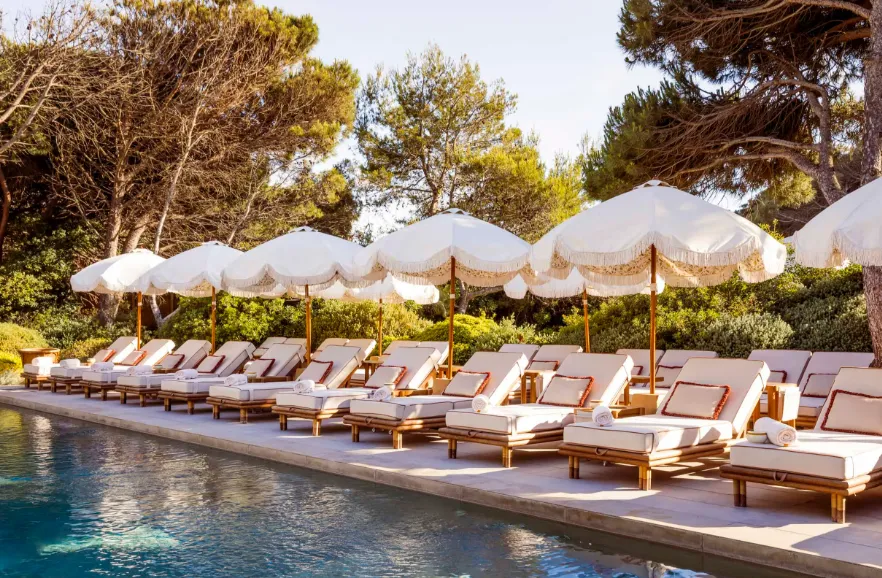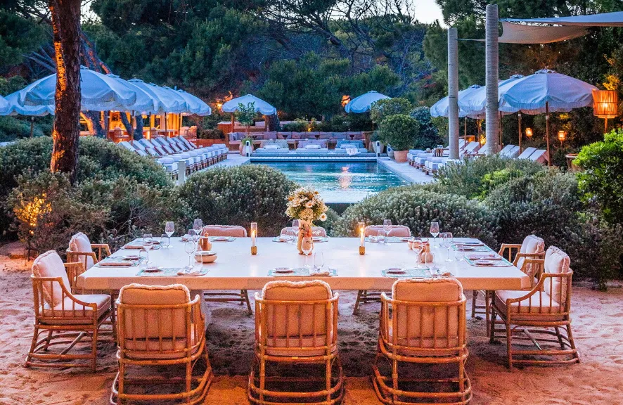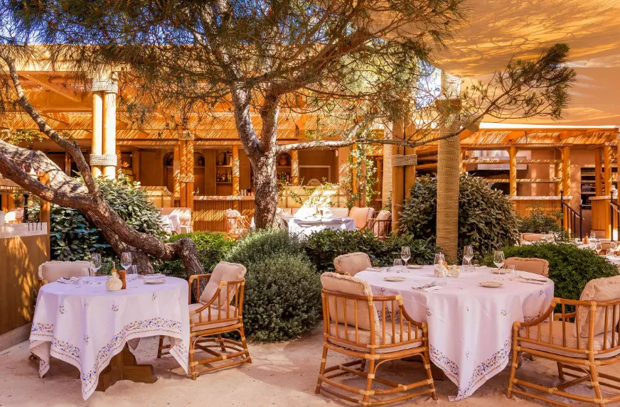 Gigi Ramatuelle's design blends Tuscan rusticity with Mediterranean flair. Guests can enjoy dining under the shade of olive trees, lounging by the pool, or relaxing in one of the exclusive cabanas—Ischia, Ponza, Capri, or Elba—each offering a private sanctuary. The venue also features pétanque courts, hammocks, and a dedicated wellness area, ensuring a comprehensive leisure experience.