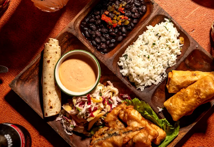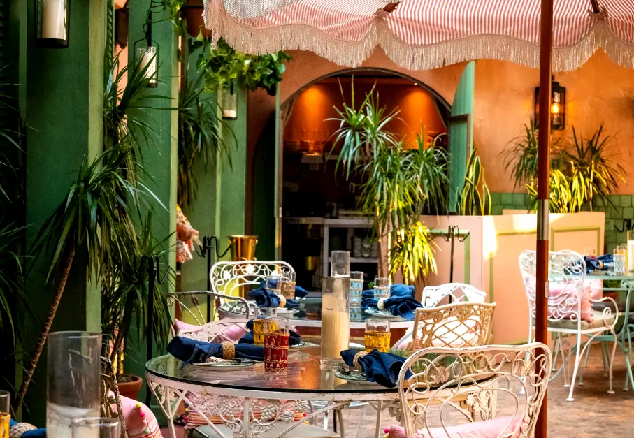 The design evokes vintage Baja California, infused with old-Hollywood elegance. Faded stucco, terracotta accents, leather booths, Talavera tiles, wrought-iron patio furniture, and a grand fireplace are among the visual highlights. The setting includes both indoor intimate nooks and a lush outdoor tile-patio with cabanas. A playful feature: certain tables have “Push for Tequila” buttons to summon drinks directly.