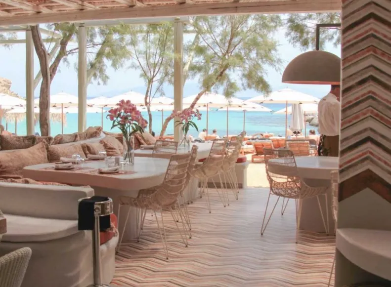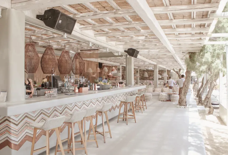 Kalua Beach Bar in Mykonos offers a captivating blend of bohemian elegance and coastal charm, creating an atmosphere that transitions seamlessly from daytime relaxation to evening celebration. The interior design features a harmonious mix of natural materials and contemporary aesthetics, with elements such as woven rattan chairs, plush cushions, and earthy tones that evoke a sense of laid-back luxury. Large windows and open spaces invite the surrounding beauty of Paraga Beach indoors, blurring the lines between the interior and the seaside environment.