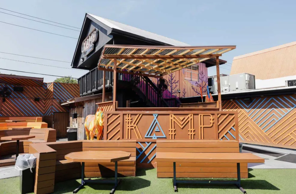 Kamp Houston offers exclusive VIP services tailored for both intimate gatherings and lively celebrations. Guests can reserve the VIP Room, an indoor "glamping" space featuring stylish booths, table dining, flatscreen entertainment, and private bar service, accommodating up to 50 guests. Alternatively, the Log Room provides an outdoor-inspired ambiance with indoor comforts, including casual booths and high-top cocktail tables, also hosting up to 50 guests. Both rooms come with dedicated KAMP hosts, exclusive guest entrance access, and curated catering options.