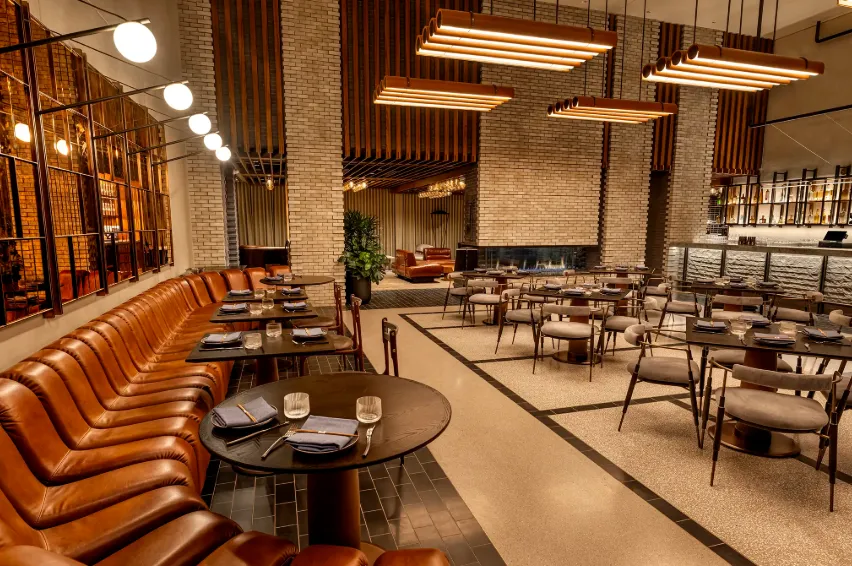 The restaurant's design features a fusion of natural wood, leather, and stone elements, complemented by soft lighting to create an elevated yet grounded ambiance. A standout feature is the custom wood-fired robata and grill suite, fueled by binchotan charcoal and local hardwood, which serves as the centerpiece for preparing yakitori and Santa Maria-style grilled dishes. The space includes various dining areas, such as an indoor dining room, outdoor lounge, whiskey lounge, and terrace lounge, each offering a unique setting for guests.