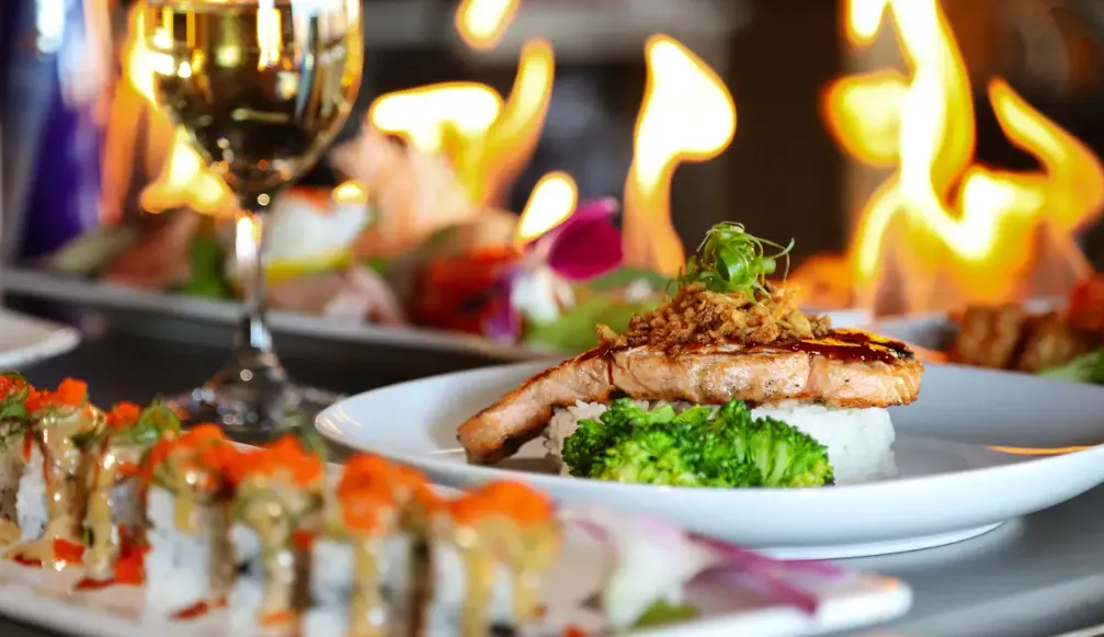 Kyoto Scottsdale does not regularly host live entertainment. However, the teppanyaki dining experience itself serves as a form of entertainment, with chefs showcasing their skills and engaging with guests during meal preparation. The restaurant also offers private dining options for special events and group gatherings.