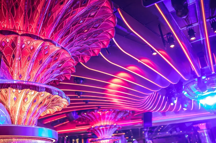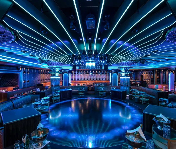 Les Caves du Roy, nestled within the iconic Hôtel Byblos in Saint-Tropez, is a legendary nightclub renowned for its opulent and eclectic design. The interior seamlessly blends Eastern opulence with Mediterranean flair, featuring illuminated palm trees, baroque columns, and plush velvet seating. The club's lighting design, crafted by FFD Miami and The Design Group, incorporates dynamic chandeliers and LED accents, creating an immersive and vibrant atmosphere. This fusion of luxury and artistic expression has made Les Caves du Roy a magnet for celebrities and nightlife enthusiasts seeking an unforgettable experience.