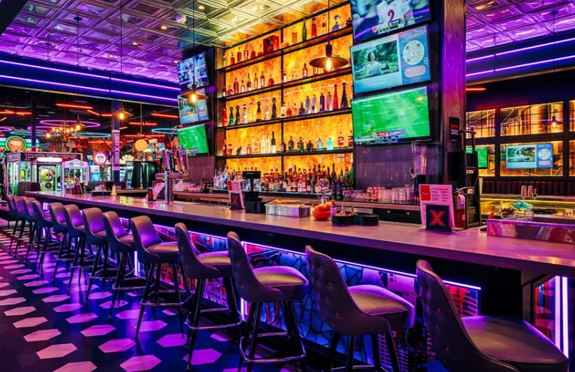 The venue features 16 state-of-the-art bowling lanes, including private lanes for exclusive gatherings. Its modern design features plush seating, ambient lighting, and two dance floors, creating an energetic atmosphere that transitions seamlessly from daytime fun to nighttime excitement. With designer lounges, free Wi-Fi, and a full-service bar, Lucky Strike Bellevue caters to a diverse crowd seeking both relaxation and entertainment.