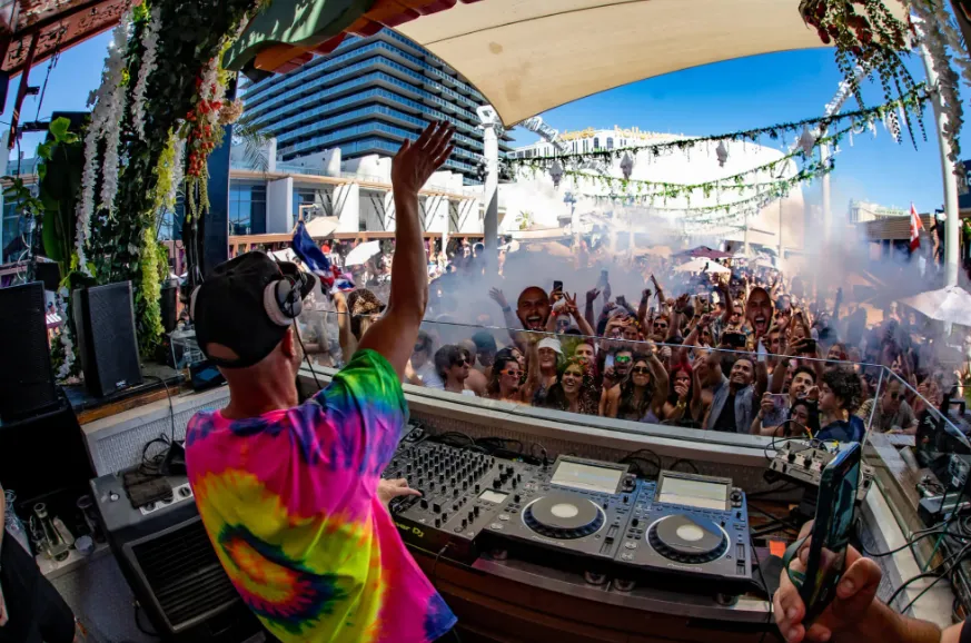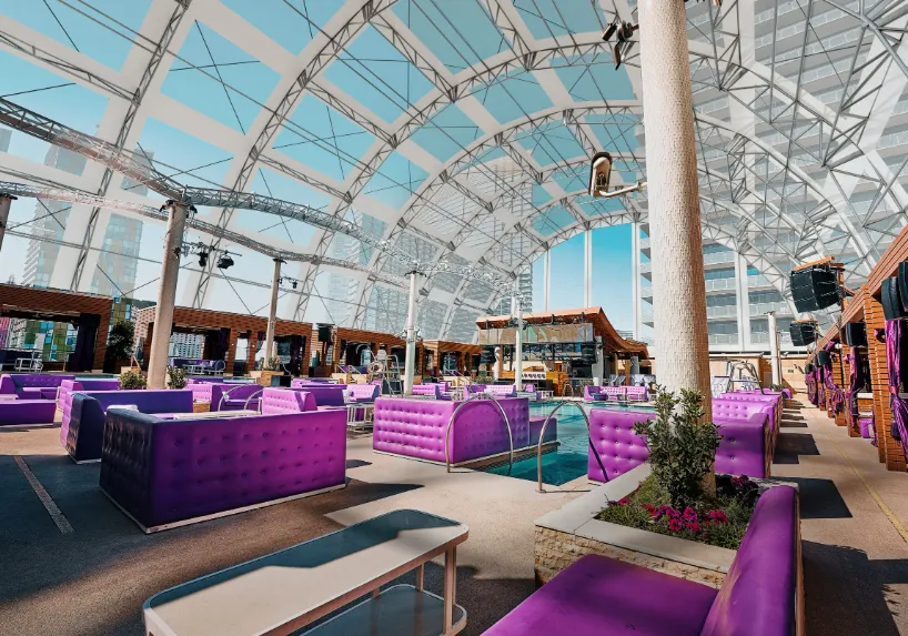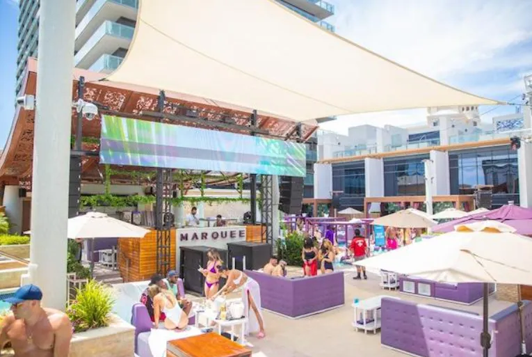 Marquee Dayclub at The Cosmopolitan of Las Vegas offers an electrifying atmosphere that seamlessly blends opulence with high-energy entertainment. The venue features a 22,000-square-foot rooftop pool deck adorned with plush daybeds, luxurious cabanas, and grand bungalows, creating an inviting environment for guests seeking both relaxation and excitement. The design incorporates state-of-the-art lighting and sound systems, transforming the space into a vibrant party destination.