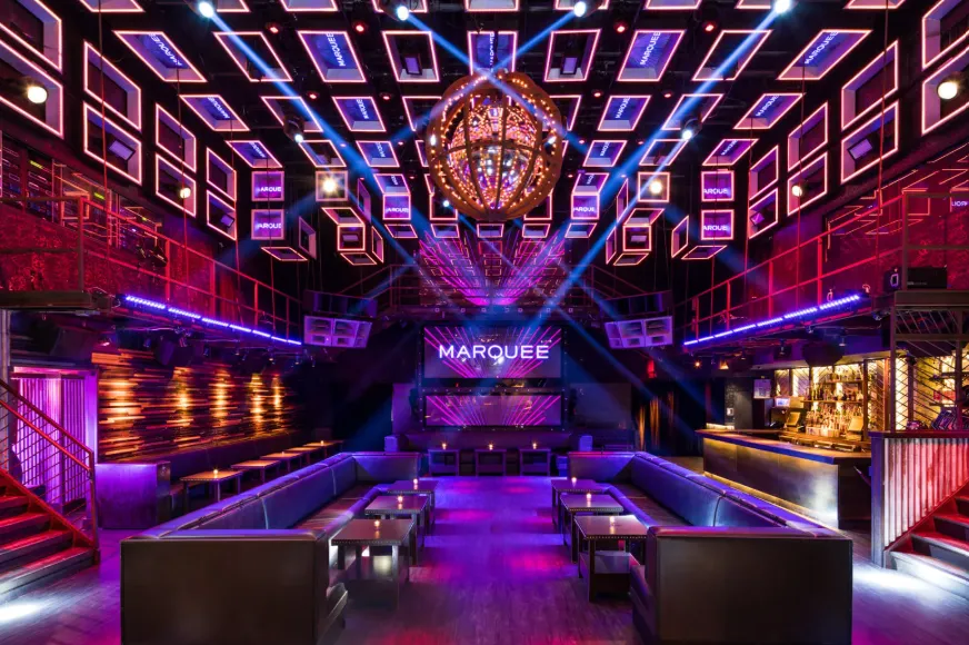 Marquee New York is electric, high-energy, and designed to immerse guests in an unforgettable nightlife experience. The club combines a luxurious, modern aesthetic with cutting-edge technology, featuring a massive LED wall, dynamic lighting systems, and a powerful Funktion-One sound setup that delivers crisp, deep bass and immersive beats. The interior blends sleek, contemporary design with plush lounge areas, VIP sections, and an expansive dance floor that pulses with energy. With its vibrant visuals, state-of-the-art production, and stylish crowd, Marquee creates an intense yet glamorous vibe that makes it one of New York City’s premier destinations for late-night entertainment.