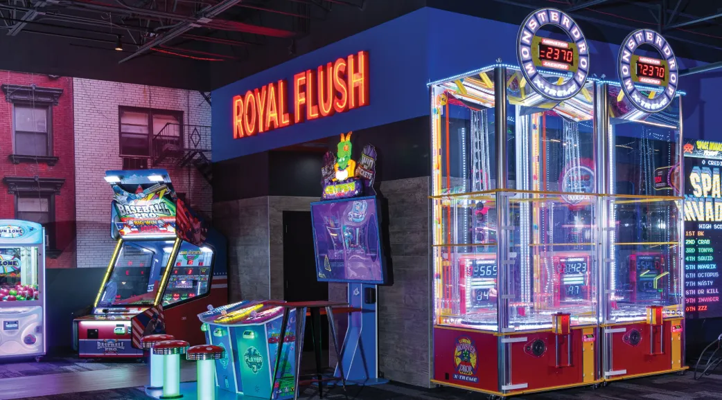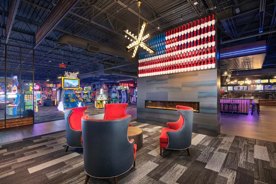 Mavrix Scottsdale boasts a vibrant and modern atmosphere, blending industrial design elements with upscale amenities to create an engaging entertainment experience. The venue features sleek finishes, including custom-painted maple and charred larch wood, complemented by steel accents and ambient lighting, offering a stylish yet comfortable setting for guests. Its open-concept layout encompasses 22 bowling lanes, an expansive arcade, a state-of-the-art laser tag arena, billiards tables, and a 5,000-square-foot restaurant and bar, all designed to facilitate social interaction and group enjoyment. The Trophy Room, Mavrix's in-house sports bar, enhances the atmosphere with its theater-style seating and numerous high-definition flat-screen televisions, providing an immersive environment for sports enthusiasts. Additionally, the venue offers an outdoor games patio featuring activities like cornhole and giant Jenga, further enriching the dynamic and inclusive ambiance of Mavrix Scottsdale.