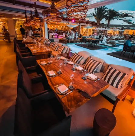 Meraki Mykonos boasts a chic yet relaxed ambiance, combining traditional Greek elements with modern luxury. Guests can dine alfresco while enjoying stunning sunset views over the Aegean Sea. The space is designed to evoke a sense of tranquility and sophistication, making it an ideal setting for both intimate dinners and social gatherings.