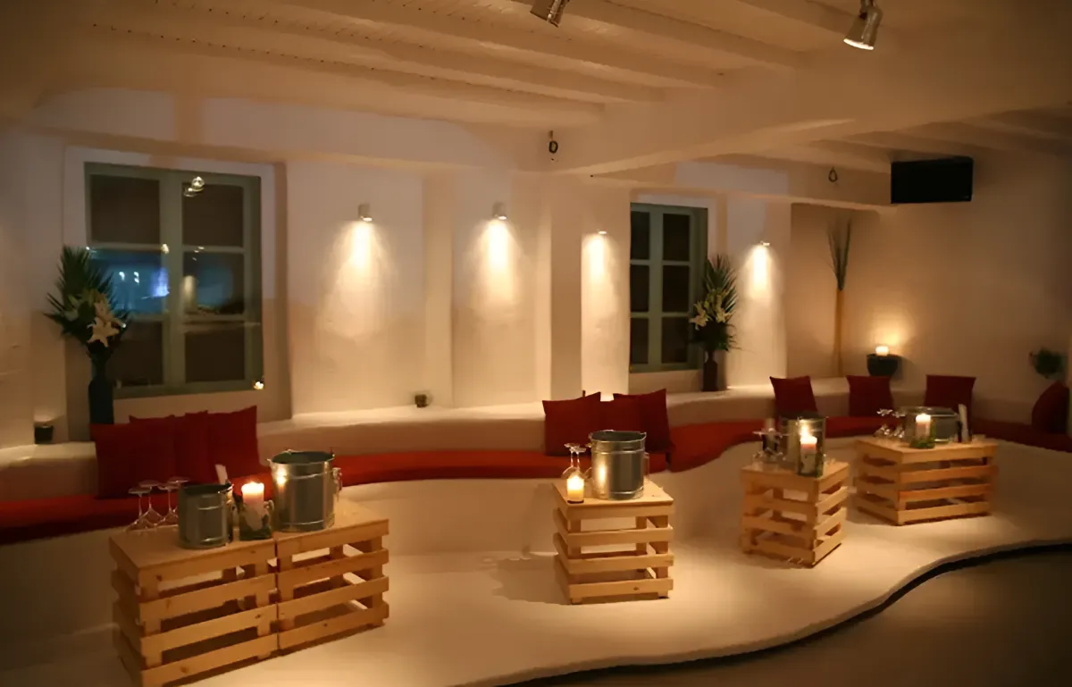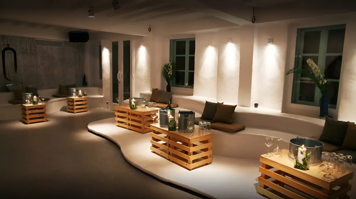 Moni Mykonos features a chic, minimalist design that emphasizes elegance and intimacy. The venue is known for its curated ambiance, combining modern decor with traditional Greek elements. This setting attracts a cosmopolitan crowd, including celebrities, socialites, and discerning partygoers seeking an upscale nightlife experience.