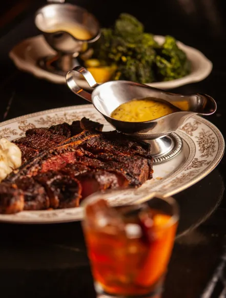 Monkey Bar is an iconic American restaurant and cocktail lounge located in Midtown Manhattan at 60 E 54th Street, inside the historic Hotel Elysee. Established in 1936, it blends timeless Old Hollywood glamour with a vibrant, sophisticated atmosphere, attracting both locals and celebrities. The interior features plush red banquettes, dim ambient lighting, and a striking mural of New York legends, all adding to its charm. The menu offers elevated American fare with a modern twist, including standout dishes like Lobster Spaghetti, Truffle Mafaldine, Giant Prawn Scampi, and USDA Prime steaks. With its rich history, stylish décor, attentive service, and diverse offerings for lunch, brunch, and dinner, Monkey Bar delivers a classic yet contemporary dining experience that embodies the elegance and energy of New York City.