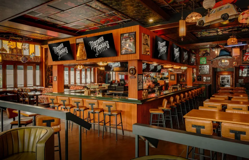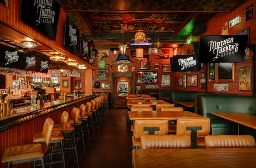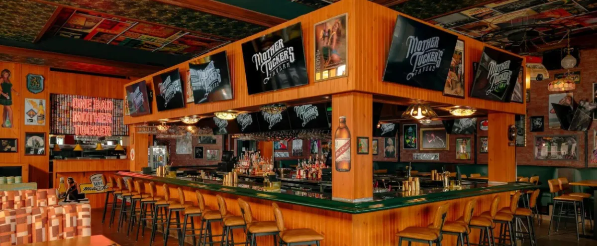 Mother Tucker's features a vintage aesthetic, combining nostalgic elements with modern amenities. Patrons can enjoy the ambiance while watching major sports events on over 20 HD TVs, participating in games like darts, or engaging in the interactive Plinko Handshake. The venue also offers private event spaces for special occasions.