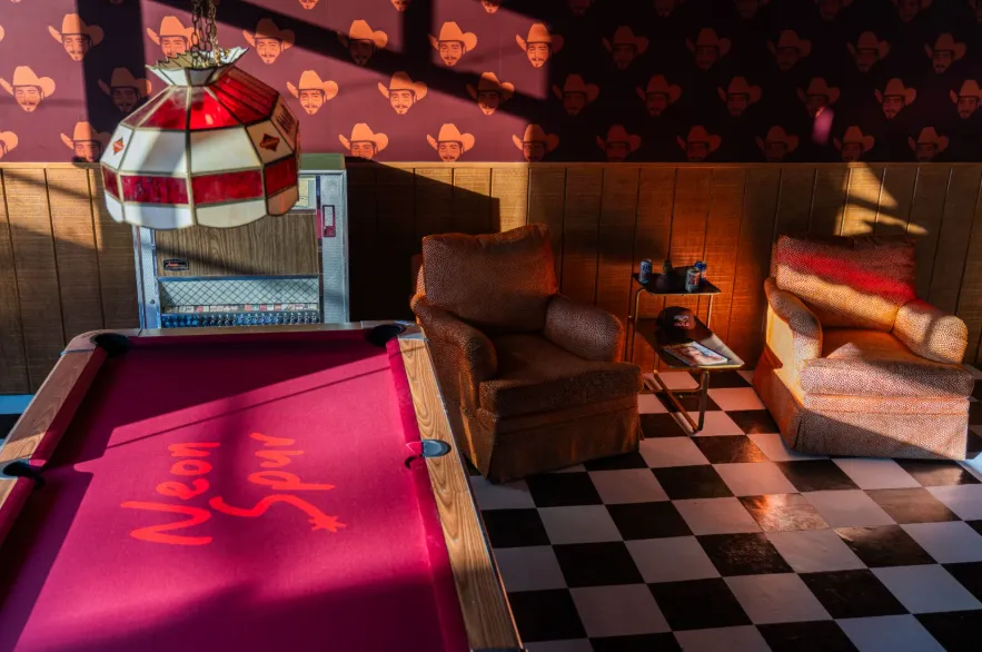 Neon Spur is a 1970s-themed Western dive bar located at 680 S Mill Ave, Tempe, AZ 85281, in the heart of downtown Tempe. Opened in early 2025, it offers a nostalgic atmosphere with a modern twist, featuring vintage furniture, neon signs, and a jukebox, creating a unique setting for patrons to enjoy cold drinks and classic American comfort food.