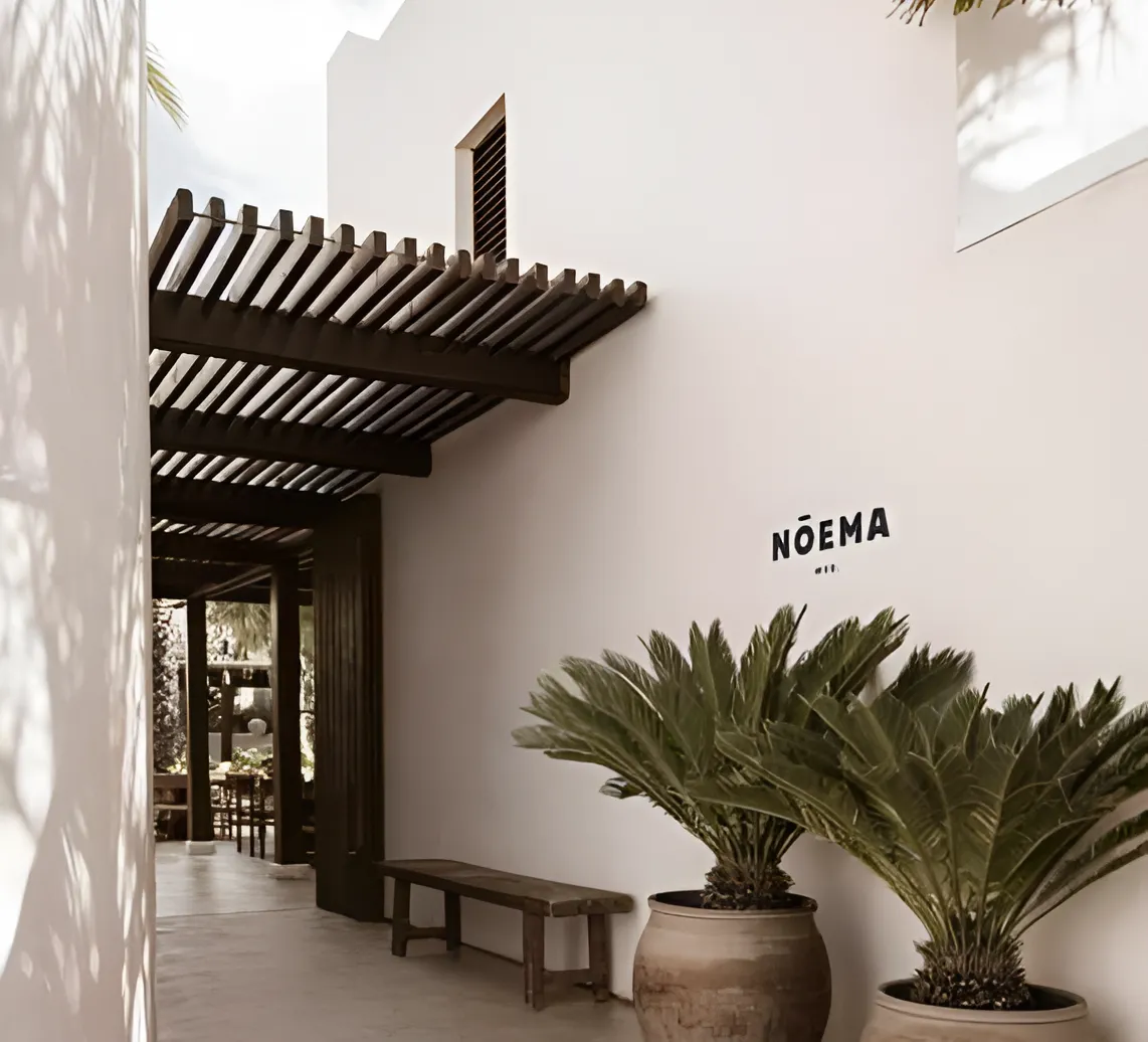 Nōema's ambiance is a harmonious fusion of Mykonian minimalism and modern luxury. The space features whitewashed walls, arched doorways, and Cycladic pottery, creating a seamless flow from the dining room to the courtyard.