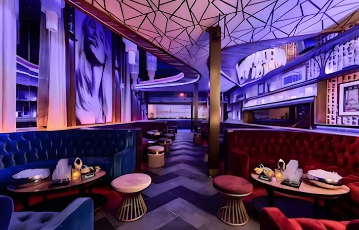 Off Sunset in West Hollywood offers an atmosphere of exclusive sophistication, blending modern luxury with a touch of old‑Hollywood mystique. The interior design is intimate and theatrical, featuring rich velvet seating, plush lounges, and dramatic lighting that creates a warm yet mysterious ambiance. Elegant chandeliers, floating ceilings, and artful décor details enhance the sense of opulence, while the layout—combining indoor lounges and private booths—fosters both social mingling and intimate gatherings. The result is a space that feels like a hidden gem: stylish, seductive, and designed for guests seeking a private, high‑energy nightlife experience.