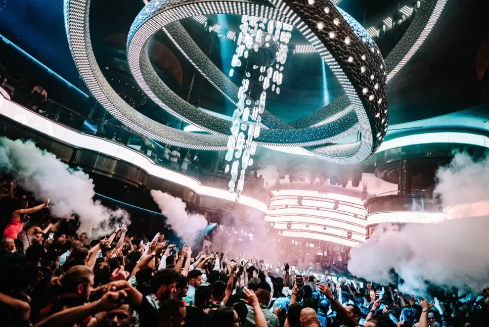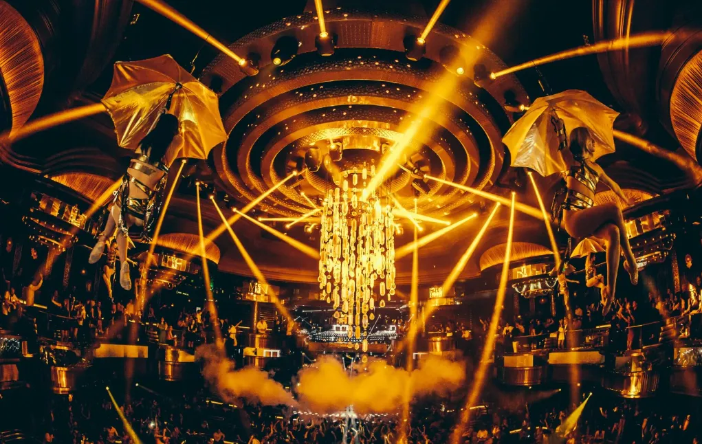 Omnia Nightclub at Caesars Palace in Las Vegas is a premier nightlife destination that seamlessly blends opulence with cutting-edge technology. Spanning 75,000 square feet, the venue is divided into three distinct areas: the high-energy main room, the intimate Heart of Omnia, and a rooftop terrace offering panoramic views of the Las Vegas Strip. A standout feature is the kinetic chandelier in the main room, a 40-foot-wide installation that moves and changes colors in sync with the music, creating a dynamic and immersive atmosphere.