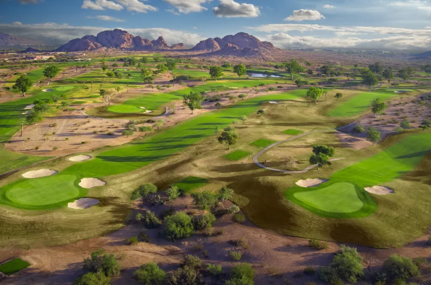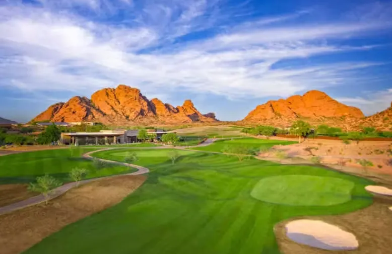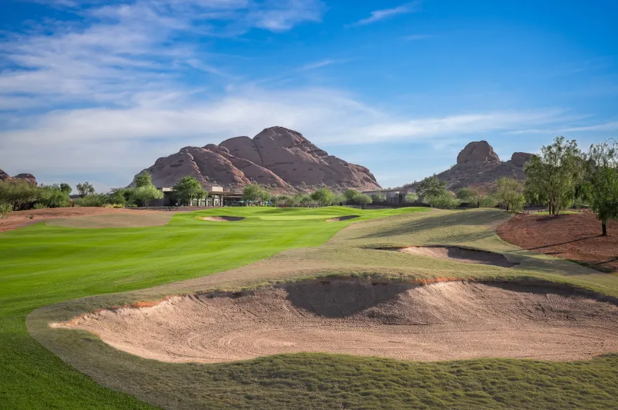 Set against the backdrop of the iconic red sandstone formations of the Papago Buttes, the course offers breathtaking views of the surrounding desert landscape. The layout is characterized by rolling fairways, strategically placed bunkers, and challenging greens that require precision and strategy. The course's design blends seamlessly with its natural surroundings, creating a harmonious and immersive golfing experience.