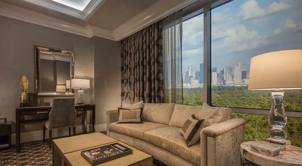 The hotel's design seamlessly blends modern elegance with classic luxury. Its 700,000-square-foot tower houses 250 ultra-modern guestrooms and suites, each featuring marble bathrooms, state-of-the-art audiovisual technology, and expansive views of the Houston skyline.