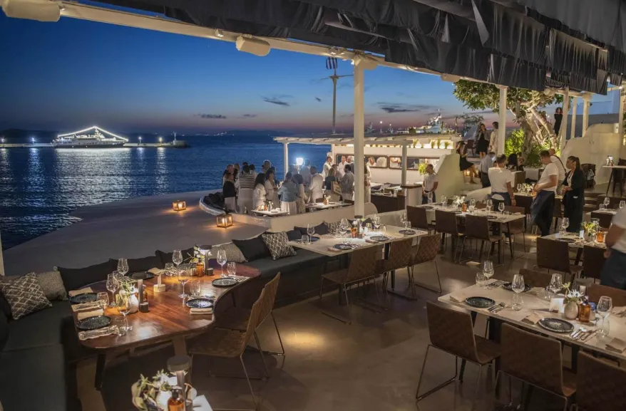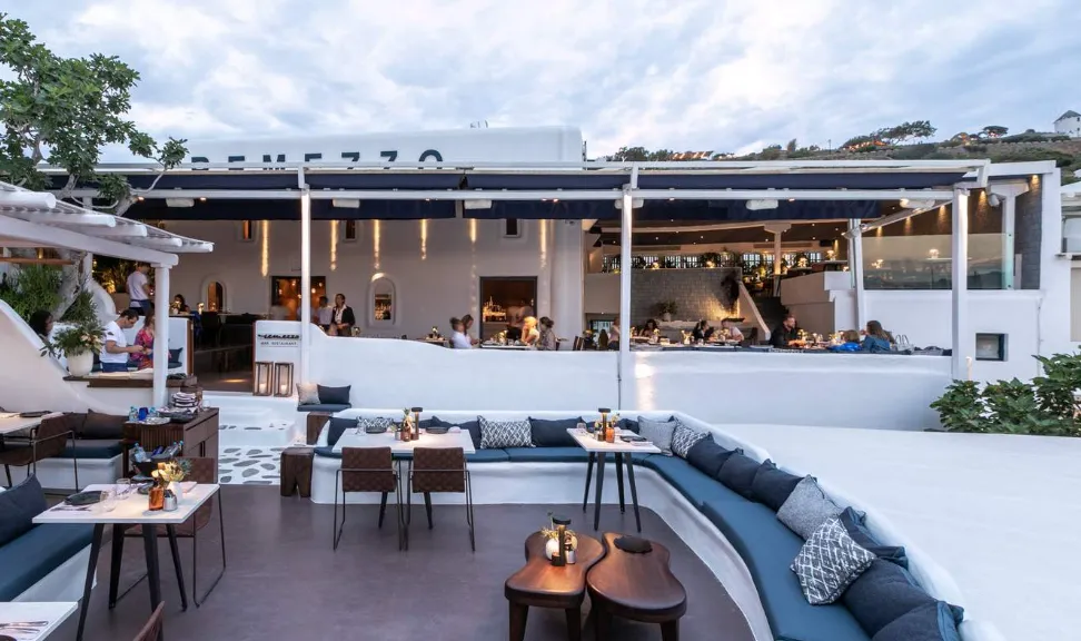 Remezzo Mykonos is a stylish waterfront destination that seamlessly blends fine dining, sophisticated cocktails, and a vibrant nightlife atmosphere. Located at the entrance of Mykonos Town overlooking the Old Port, it offers guests stunning sunset views paired with an elegant yet relaxed ambiance. By day, it serves as a chic restaurant specializing in Mediterranean cuisine, with fresh seafood and locally inspired dishes. By night, Remezzo transforms into a lively lounge and bar, featuring expertly crafted cocktails, live DJ sets, and a social, cosmopolitan vibe. Known for its blend of scenic beauty, refined design, and energetic atmosphere, Remezzo has become a must-visit hotspot for both locals and visitors seeking the quintessential Mykonos experience.