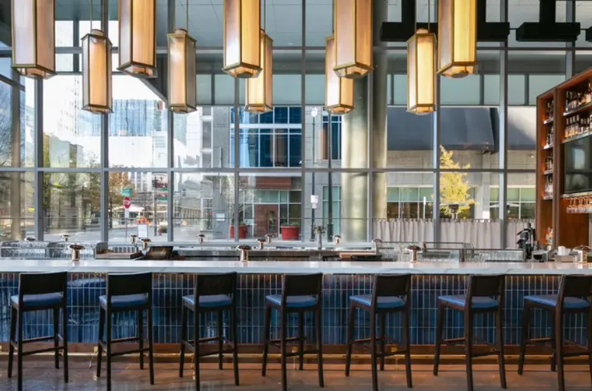 The River House is an upscale restaurant located at 313 Demonbreun Street, Nashville, TN 37201, in the heart of the SoBro district. Situated within the Bridgestone Americas Corporate Headquarters, it offers a refined dining experience with a menu that features a diverse selection of dishes, including sushi, seafood, chops, and steaks. Known for its elegant atmosphere and attentive service, The River House provides a sophisticated setting for both casual dining and special occasions.