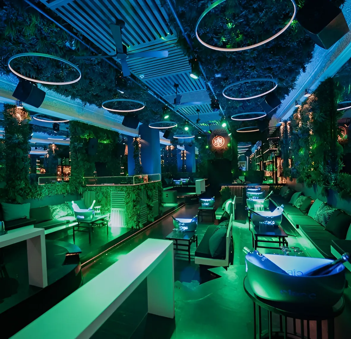 Sanctus Mykonos boasts a chic and stylish interior, featuring contemporary decor that blends seamlessly with the island's traditional Cycladic architecture. The venue is designed to provide an intimate yet energetic setting, with state-of-the-art lighting and sound systems that enhance the overall experience. An outdoor terrace offers guests the opportunity to enjoy cocktails and shisha under the stars, adding to the club's allure.