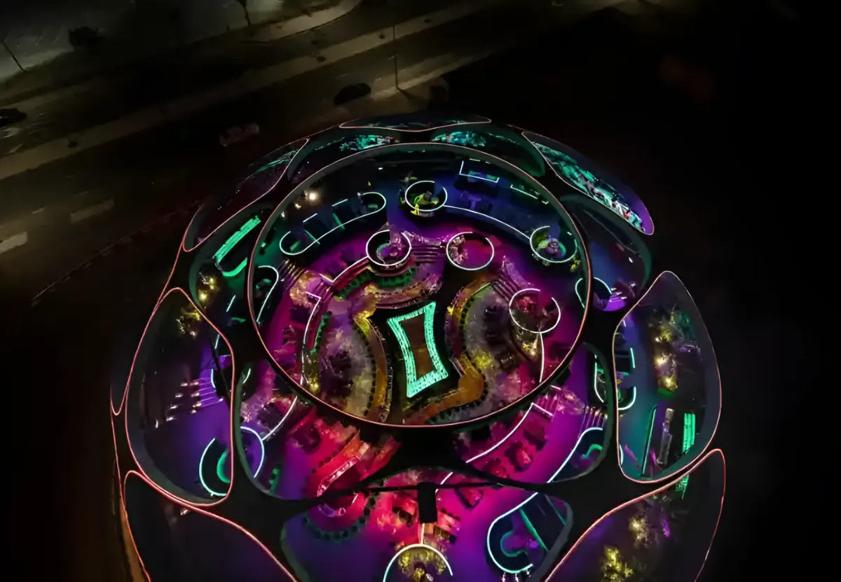 Sky 2.0 stands out with its futuristic, dome-shaped architecture, designed to resemble a UFO. The venue features bendable screens, grand lighting designs, and an immersive sound system that wraps around the spherical space, creating a dynamic and interactive environment for guests. The club's design is a collaboration between nightlife experts and international architects, resulting in a visually striking and acoustically optimized venue.