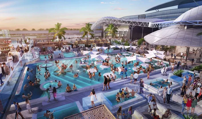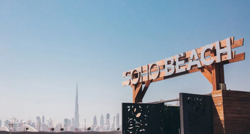 Soho Beach DXB’s atmosphere is a blend of laid-back luxury and high-energy party vibes, set against sweeping views of the Dubai skyline. By day, the design emphasizes resort-style relaxation with sleek white loungers, stylish cabanas, and an expansive pool deck that creates a chic, beach-club aesthetic. As the sun sets, the venue transforms into a vibrant nightlife hotspot, with dynamic lighting, upbeat music, and an open-air setup that brings a festival feel to the waterfront. The combination of modern design, open space, and seamless day-to-night transitions gives Soho Beach an atmosphere that feels both exclusive and effortlessly lively.