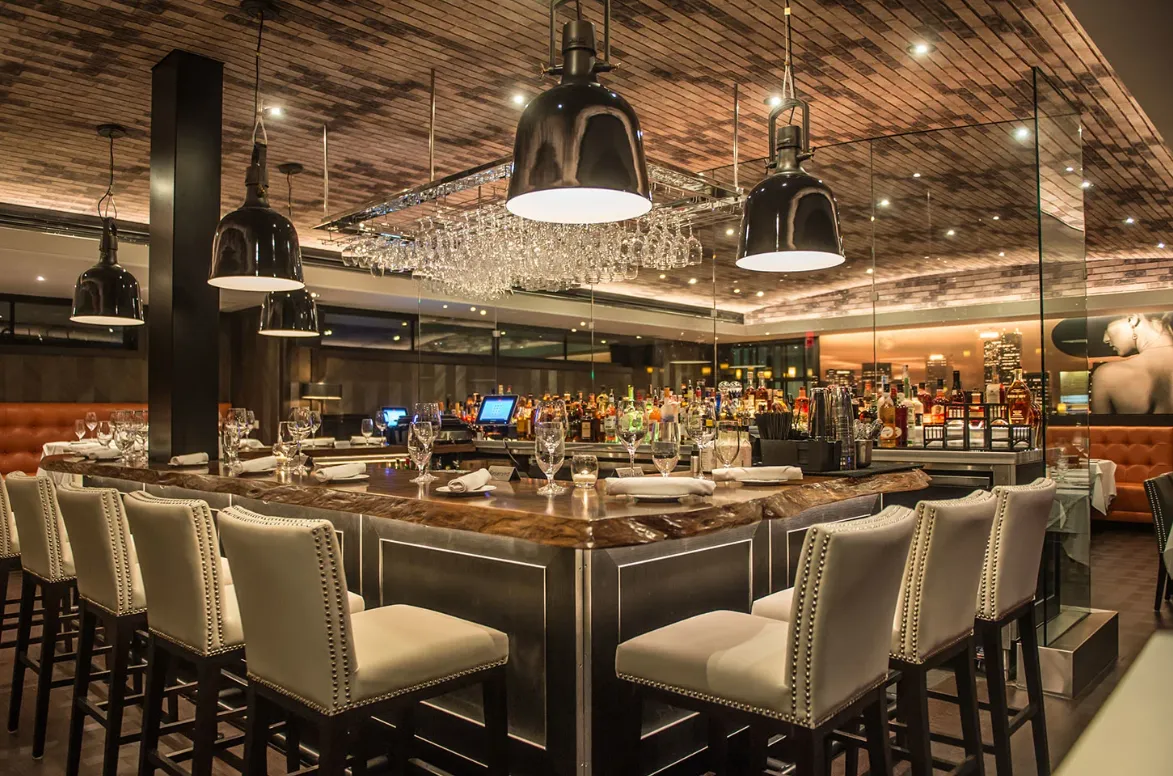 Steak 44 in Phoenix offers a sophisticated dining experience that blends classic steakhouse elegance with contemporary design elements. Upon entering, guests are greeted by a striking wall of over 3,000 wine bottles, setting the tone for the upscale ambiance.