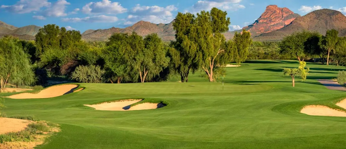 Talking Stick Resort Golf Club in Scottsdale offers a premier golfing experience with two championship courses designed by Ben Crenshaw and Bill Coore: the O’odham (North) and Piipaash (South) courses. The O’odham Course features a desert links-style layout with wide fairways and crowned greens, emphasizing strategic play over power. The Piipaash Course presents a more traditional design with tree-lined fairways and elevated greens, catering to golfers seeking a straightforward challenge. Both courses are complemented by a 17,000-square-foot driving range, one of the largest public facilities in the Valley, ideal for practice sessions.