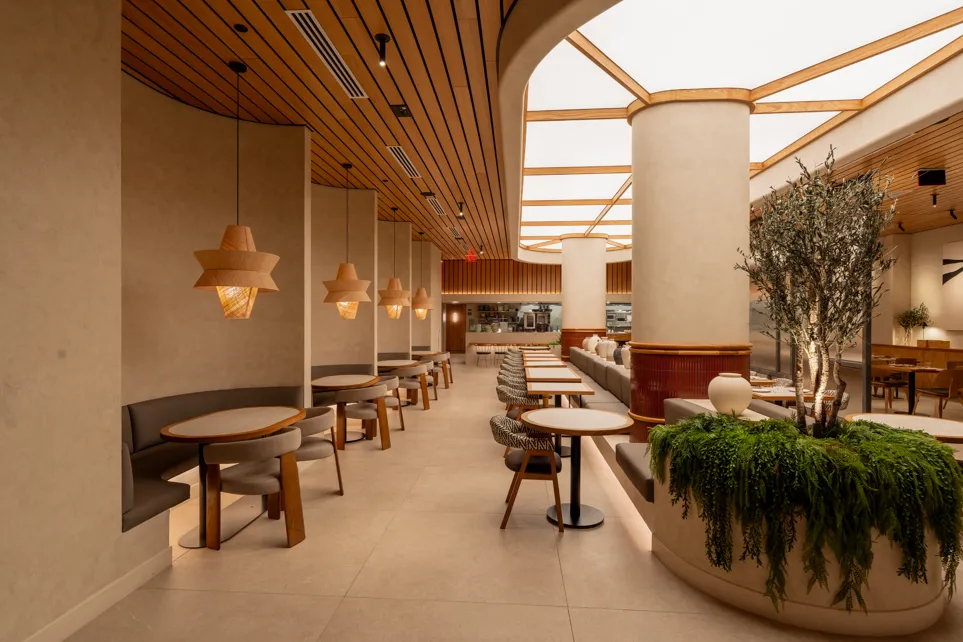 Telefèric Barcelona has a vibrant, modern atmosphere that blends upscale design with a lively, social energy inspired by Barcelona’s dining scene. The space features a mix of warm wood tones, sleek finishes, and Mediterranean-style accents, creating a setting that feels both polished and inviting. Lighting is thoughtfully layered—soft and ambient in some areas, brighter and energetic in others—helping transition the mood from relaxed dining to a more upbeat, nightlife feel as the evening progresses. The open, bustling layout and close-set seating encourage conversation and sharing, while the overall aesthetic feels trendy and immersive, making it as much about the experience and ambiance as it is about the food.