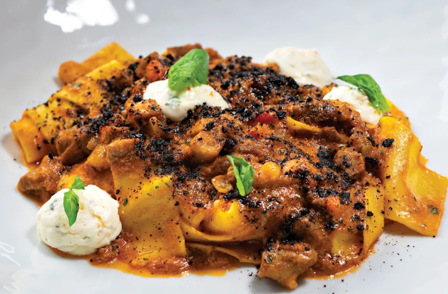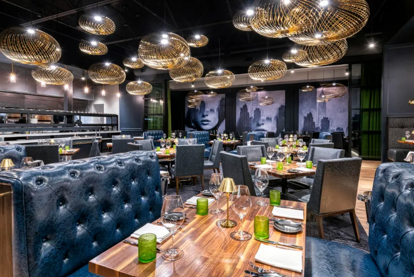 The Americano in Scottsdale offers a sophisticated and contemporary dining experience, blending modern design elements with Italian flair. The 7,000-square-foot space features an open kitchen with a wood-fired grill, allowing guests to view the culinary process firsthand. The dining area is adorned with luxurious leather booths, butcher block tables, and unique wire light fixtures that add a warm glow to the ambiance.