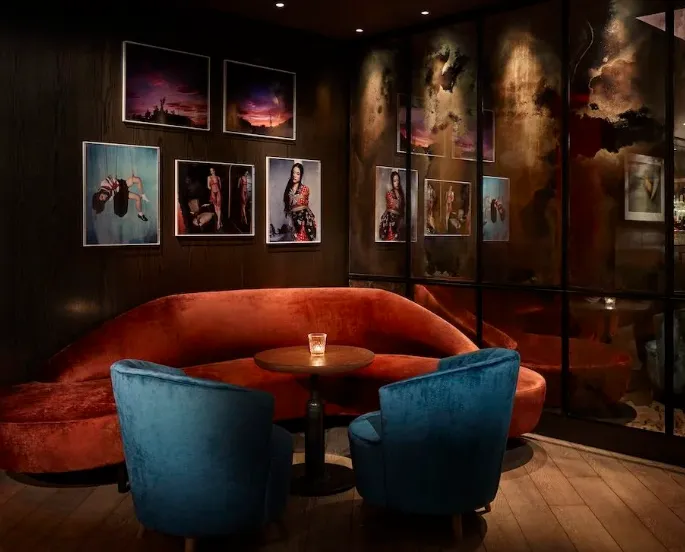 The Blond is an exclusive, upscale lounge located within the 11 Howard Hotel in SoHo, New York City. Known for its chic, speakeasy-inspired ambiance, it offers a sophisticated setting for both early evening cocktails and late-night socializing. The venue features a long, illuminated bar, velvet banquettes, and fresh floral arrangements, creating an inviting atmosphere for guests seeking a stylish night out.