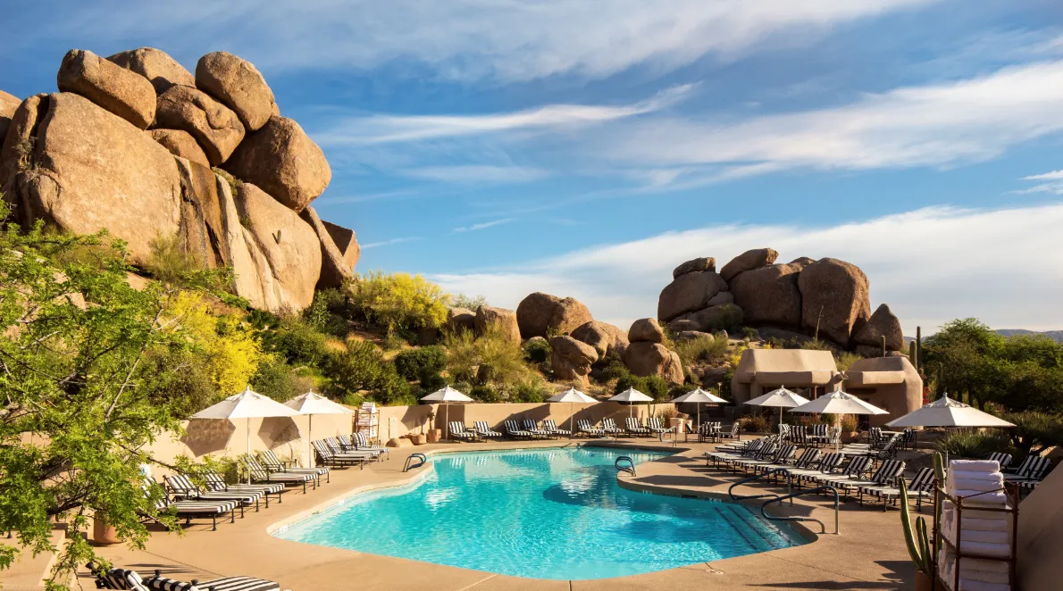 The Boulders Resort & Spa Scottsdale, Curio Collection by Hilton, is a luxurious desert retreat nestled in the high Sonoran Desert foothills of northern Scottsdale, Arizona. Spanning 1,300 acres, the resort is renowned for its striking 12-million-year-old granite boulder formations that dot the landscape, providing a dramatic backdrop to its accommodations and amenities.