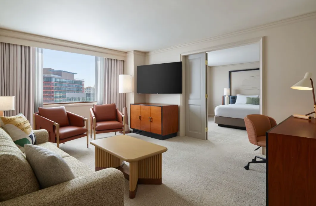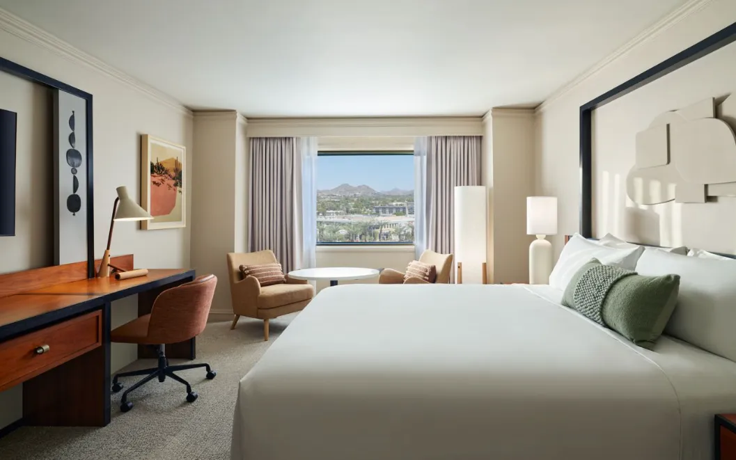 The Camby offers a sophisticated environment where “refined revelry” is woven into every design choice. Drawing on Arizona’s “Five C’s” — cotton, cattle, citrus, climate, copper — the hotel balances luxury with playfulness: expect marble and copper fixtures, rich rusts, greens and turquoise accents inspired by desert flora, and soft pinks and yellows reminiscent of desert blooms.