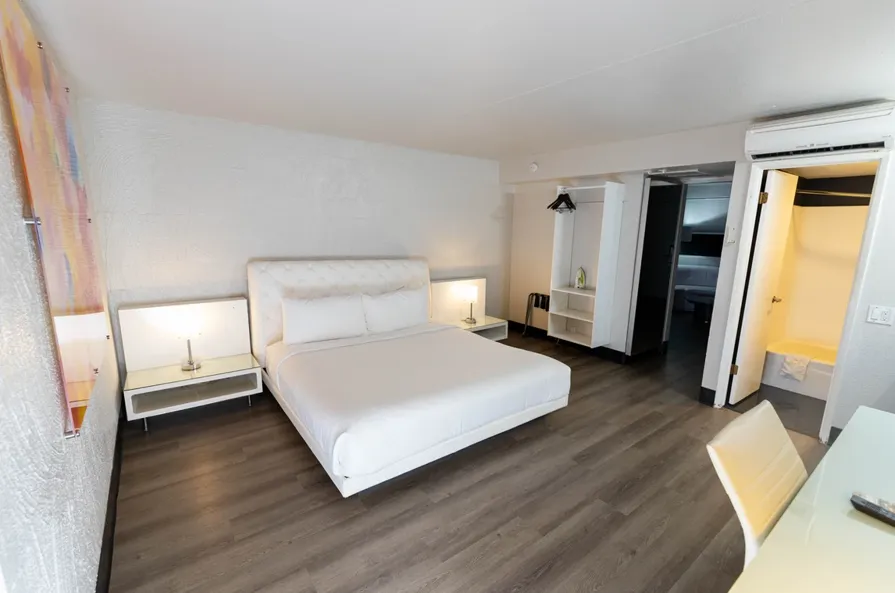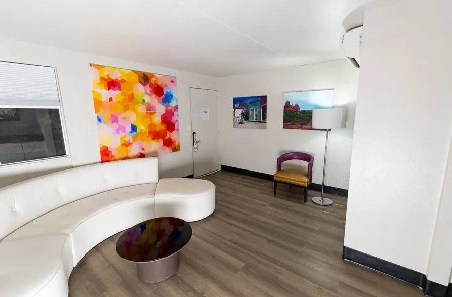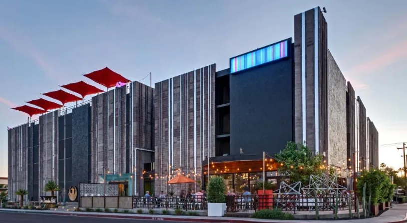 The Clarendon is a hip, boutique 4-star hotel in Midtown Phoenix, known for its retro-flavored, artsy personality and lively pool & rooftop scene. There are about 105 rooms and suites, featuring plush king or extra-long double beds, flat-screen TVs, mini-fridges, and decor that leans toward mid-century modern with colorful, fun touches.