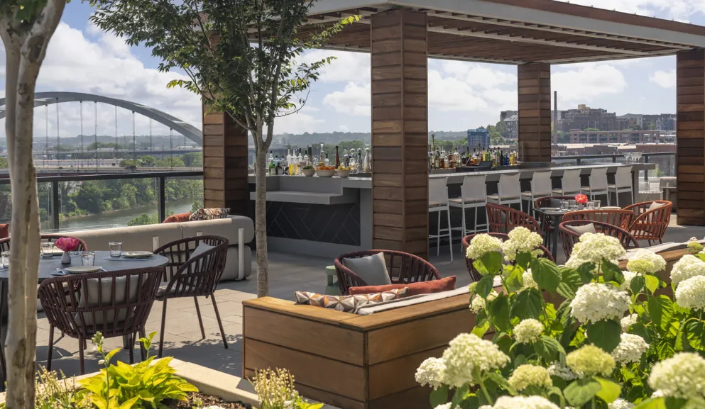 The Four Seasons Hotel Nashville seamlessly merges urban sophistication with Southern charm, offering a refined and tranquil atmosphere. Designed by Marzipan and HOK, the hotel's interiors feature a neutral color palette complemented by rich materials such as black walnut wood, brass accents, and blackened steel, reflecting Nashville's musical heritage and natural landscape.